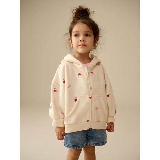 Mer informationEn mjuk och mysig hoodie i en varm, naturlig nyans som påminner om krämig havregrynsgröt. Perfekt för både lek och vila, med en smidig dragkedja oc...