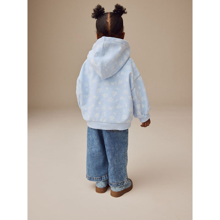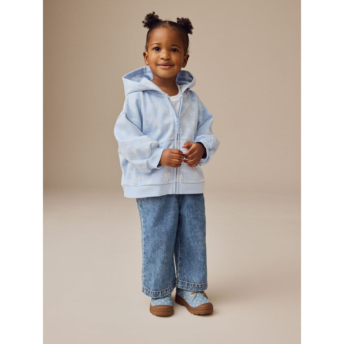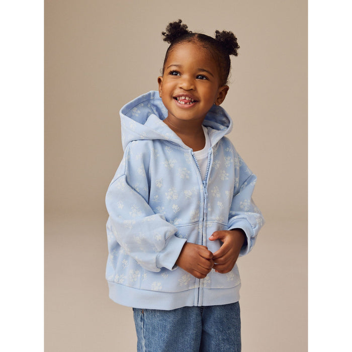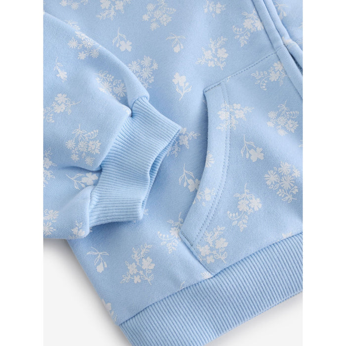 Himmelsblå – Blommig Hoodie med Dragkedja (3mån - 7år)
